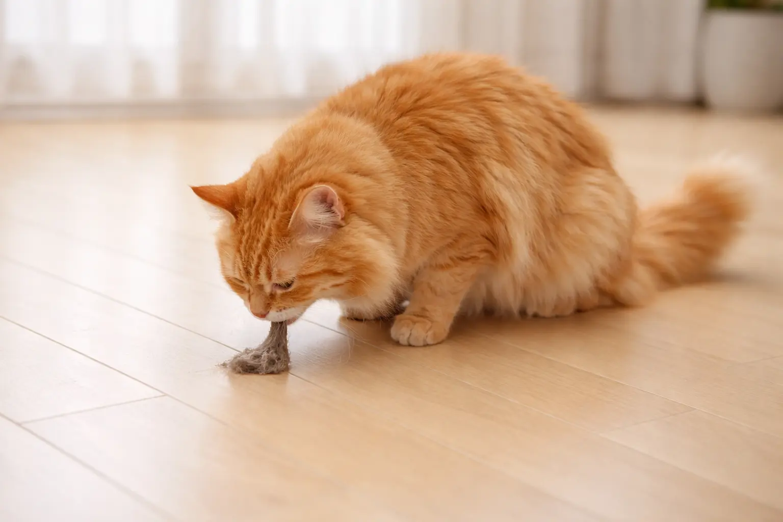 Une boule de poils (ou trichobézoard) se forme lorsque les poils avalés s’accumulent dans l’estomac ou les intestins. En petite quantité, ils passent naturellement dans les selles. Mais trop de poils ingérés peuvent créer un amas compact que le chat régurgite ou peine à évacuer.